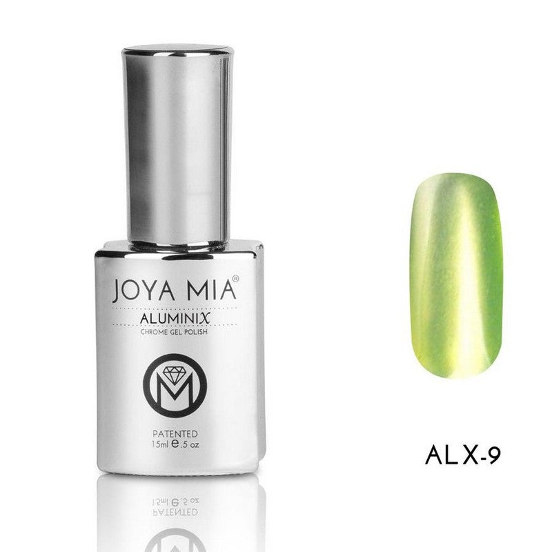 Joya Mias Aluminix Chrome Gel applied over Silver Base creates high-shine chrome nails in 24 different colors for a gorgeous look thats sleek and modern. High-quality ingredients and easy application make Aluminix a perfect gel system for both professional salons and beginners. Get the entire collection and offer specialty chrome nails in your salon.